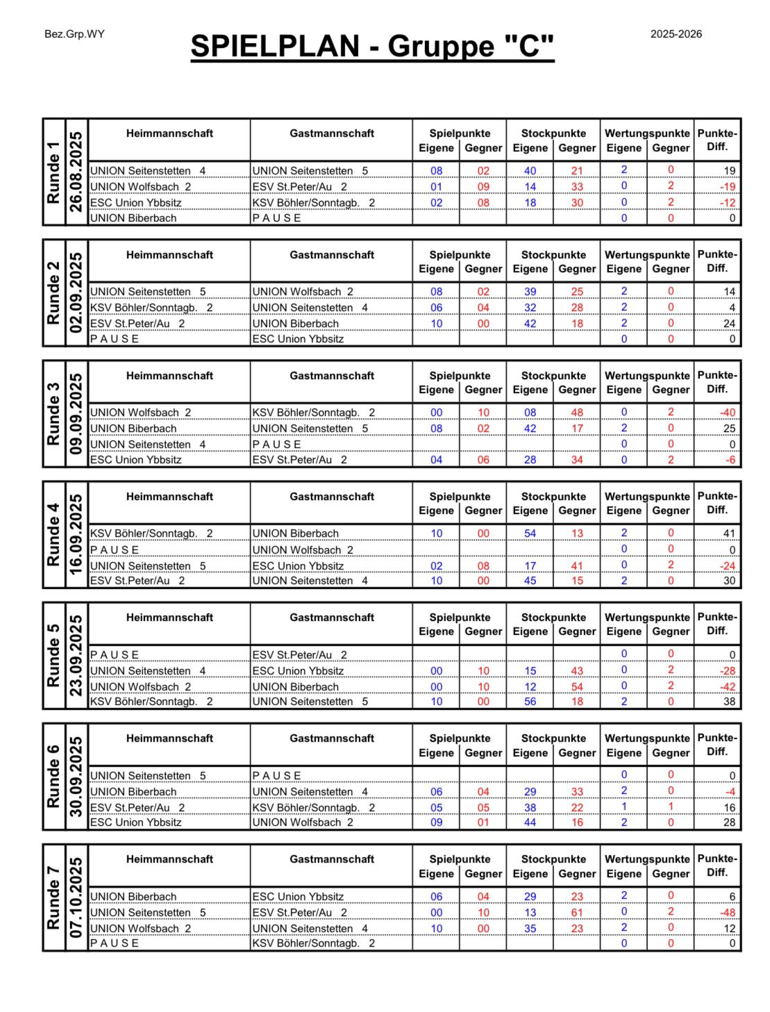 Spielplan Herbst 2025 | Spielplan Herbst 2025 |