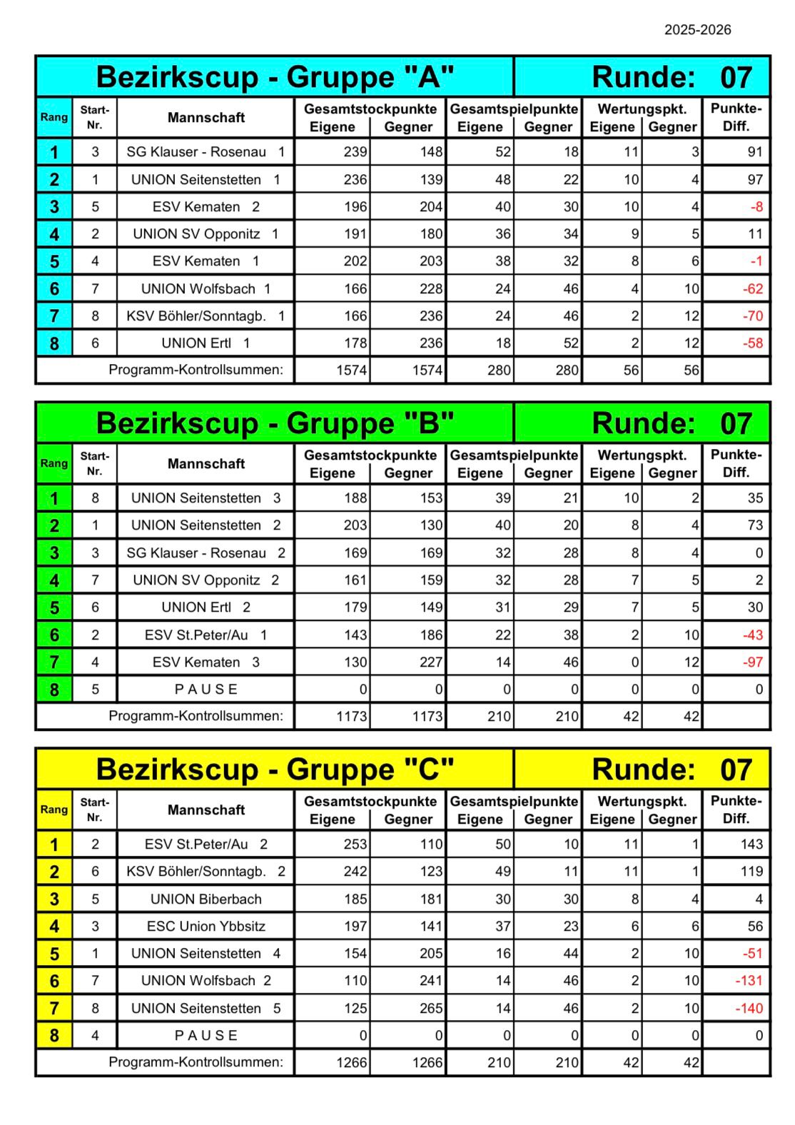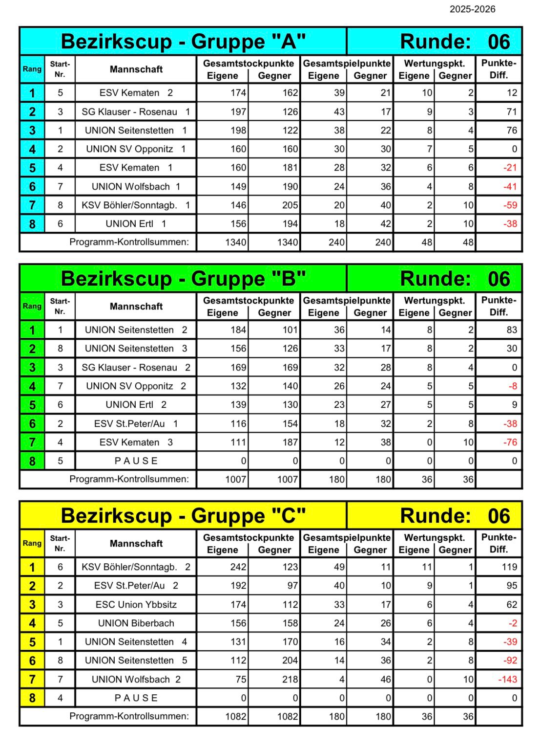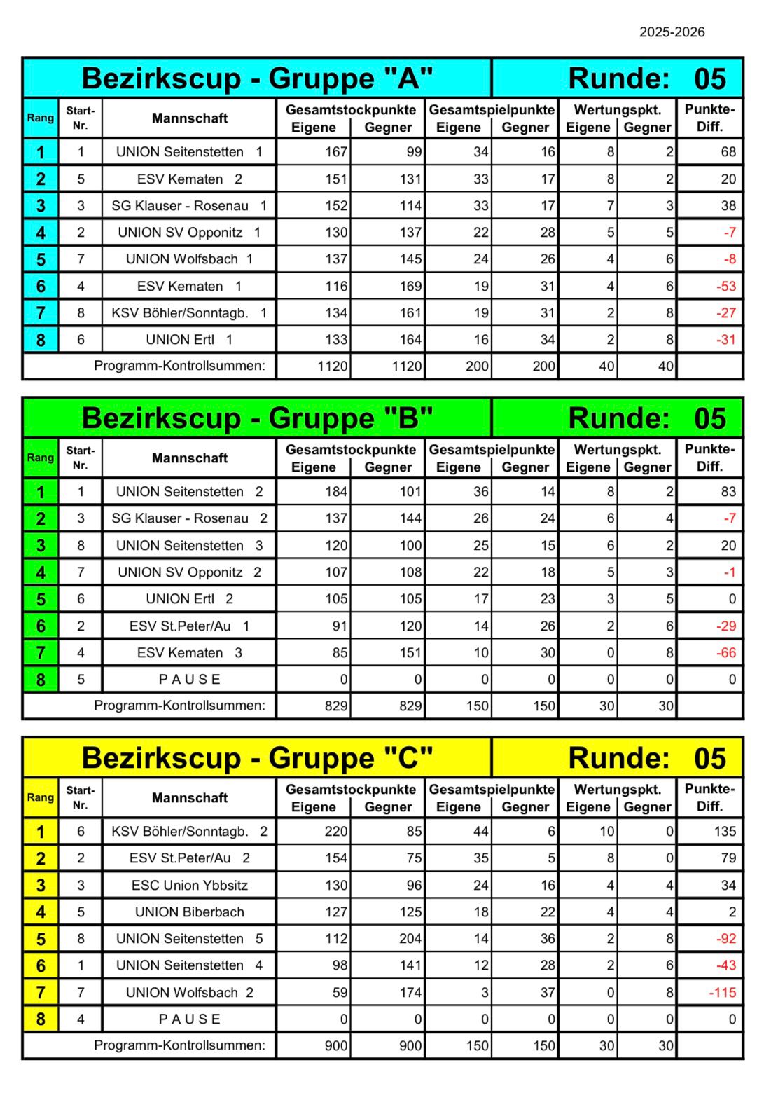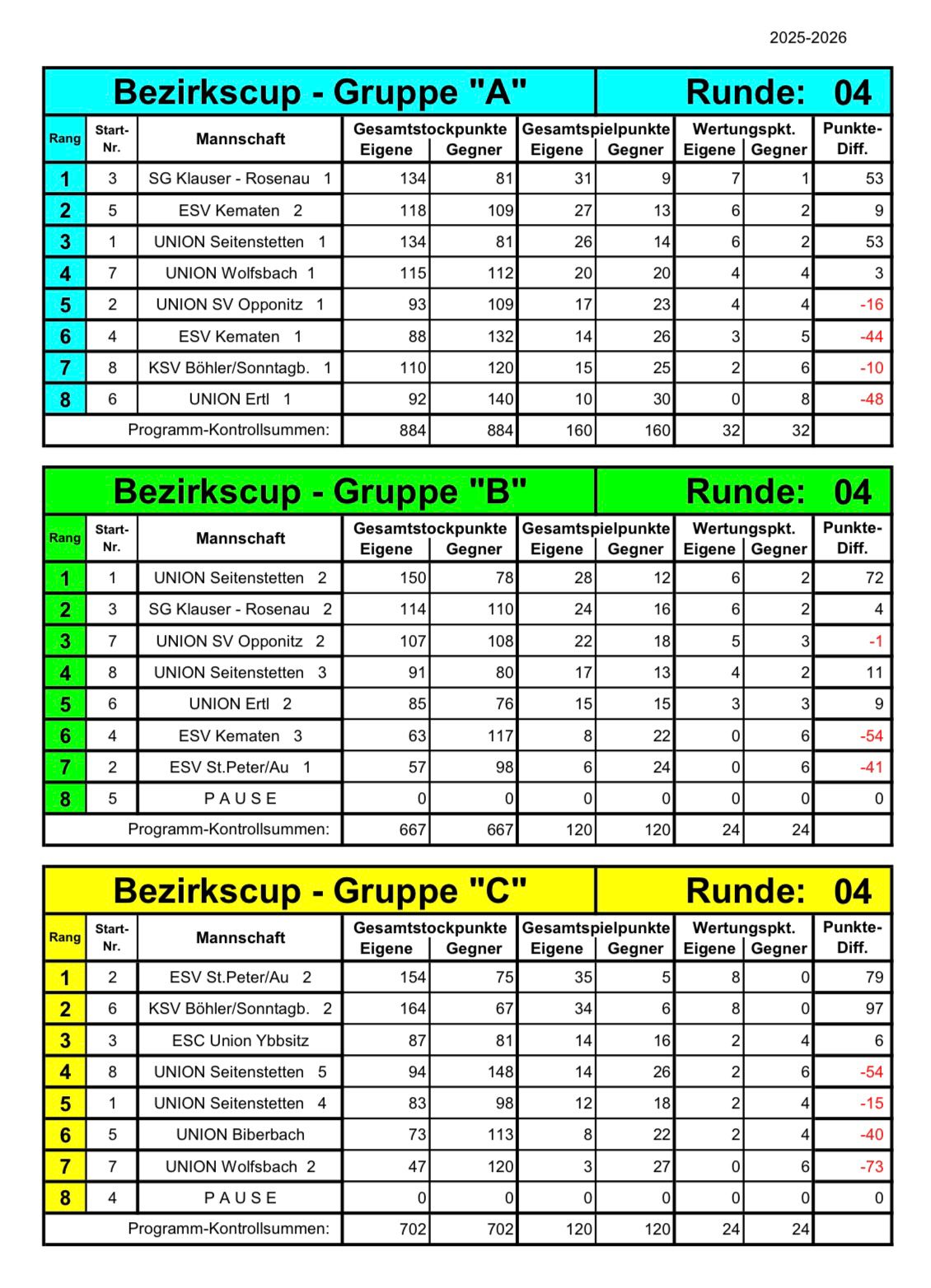 Zwischenergebnis vom aller Gruppen: