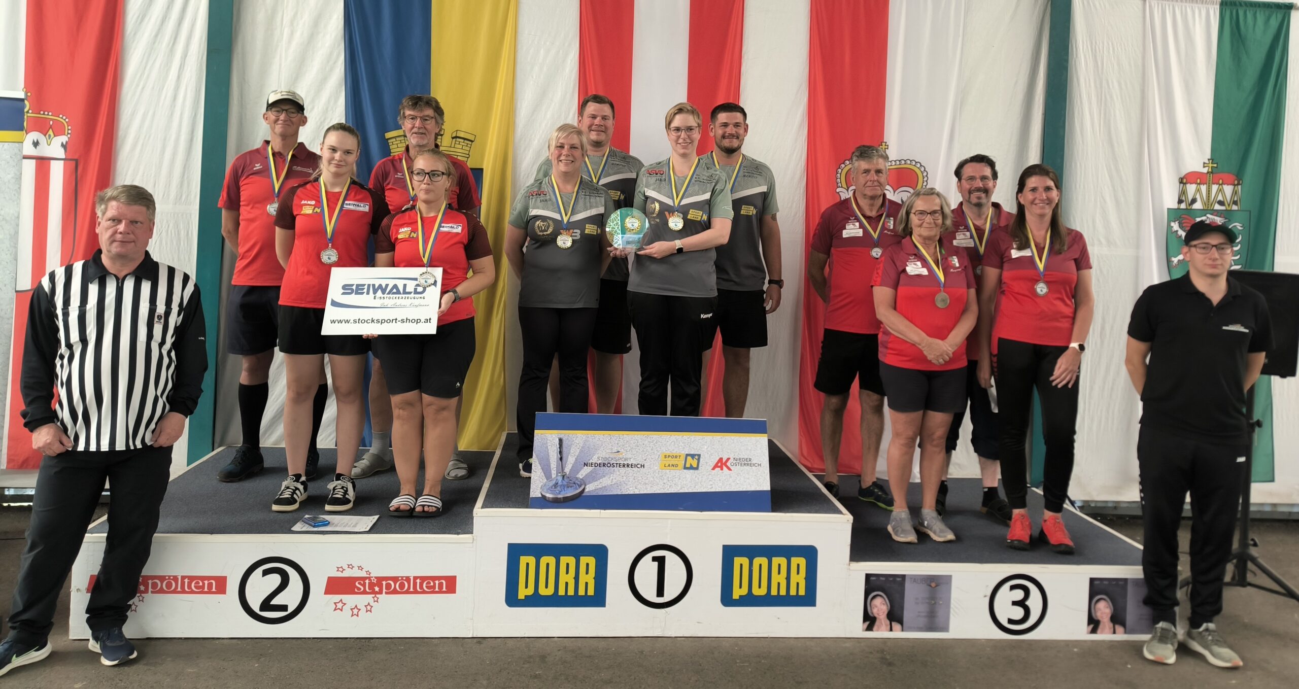 Landesmeisterschaften NÖEV – 24. August 2025 Am 24. August wurden die Landesmeisterschaften des NÖEV im Mixedbewerb ausgetragen. Insgesamt kämpften 45 Mannschaften in den drei Leistungsligen um Punkte, Platzierungen und Aufstiegsplätze. In der 2. Landesliga, ausgetragen in der Stocksporthalle Stattersdorf, trat unsere Mannschaft mit Margareta Stockinger, Iris & Manfred Wutzel sowie Martin Prem an. Nach einem holprigen Start zeigte das Team starken Kampfgeist und konnte sich von Spiel zu Spiel steigern. Im letzten Durchgang fiel die Entscheidung um den Aufstieg in die höchste Spielklasse.