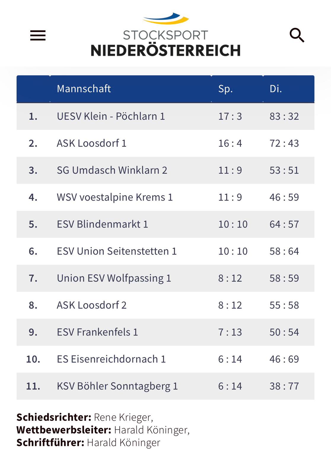 Am 24. Januar wurde erstmals eine regionale Bezirksmeisterschaft der Bezirke Amstetten, Scheibbs und Waidhofen an der Ybbs in der Eishalle Waidhofen/Ybbs ausgetragen. Insgesamt traten 11 Mannschaften aus den drei Bezirken an. Unser Verein war mit Wolfgang Pillwatsch, Manfred Reisinger sowie Leopold und Josef Edermayer vertreten. Leider verlief die Meisterschaft nicht ganz nach Wunsch, sodass am
