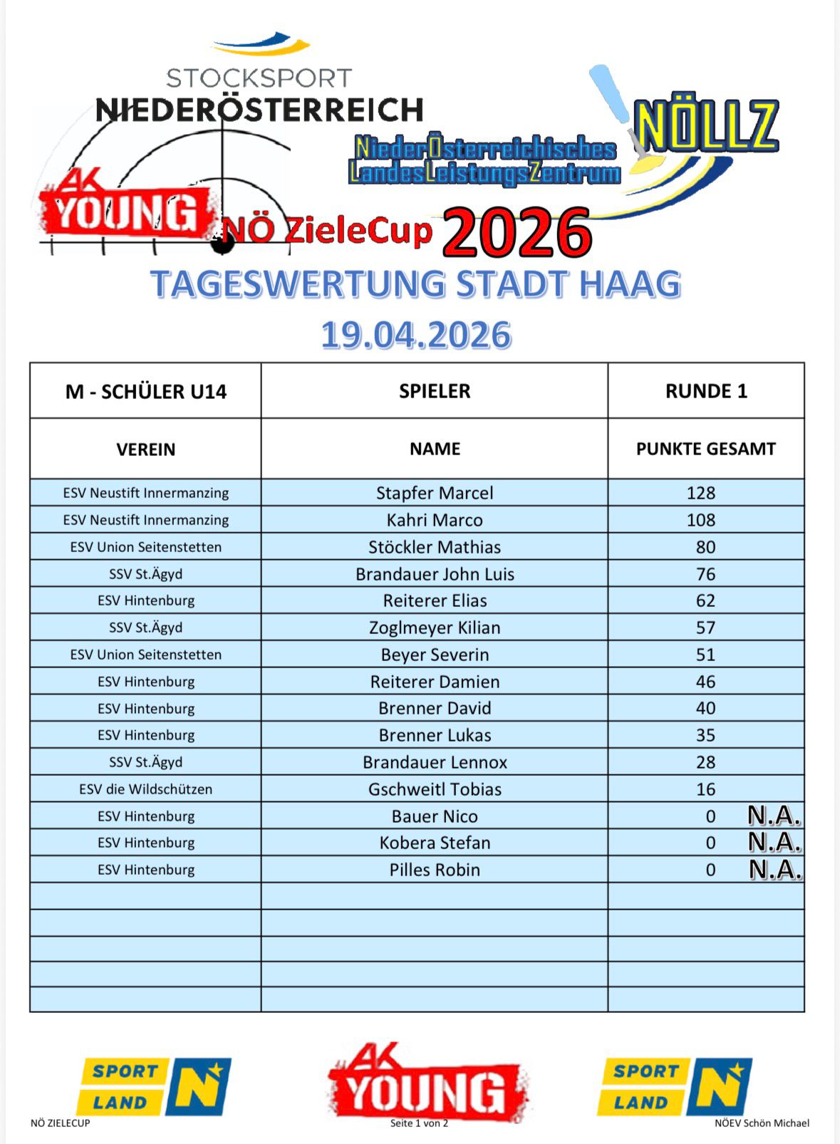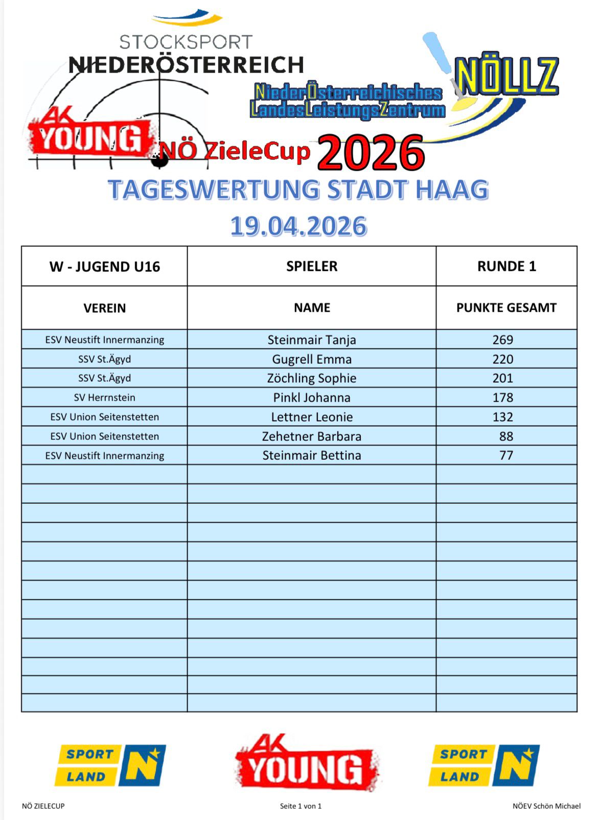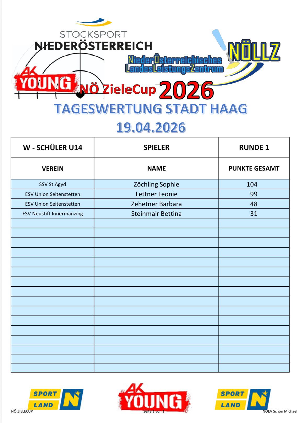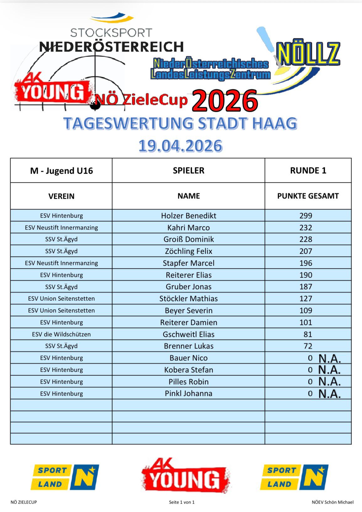 Am 19. April 2026 wurde in der Stocksporthalle Stadt Haag der erste Durchgang